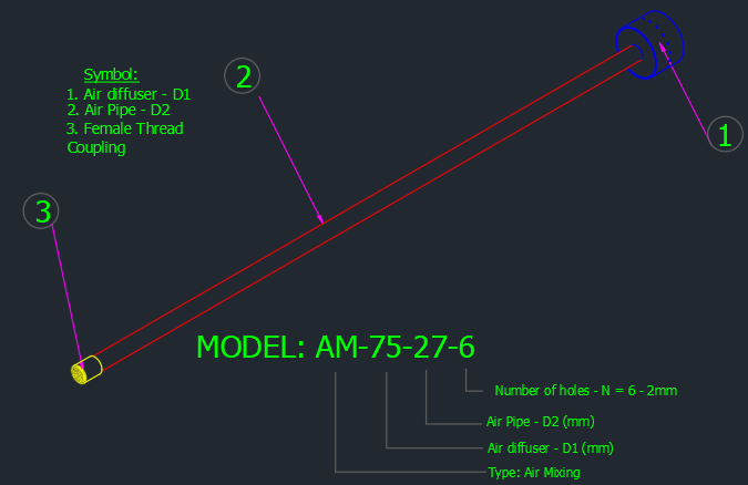 | 75 | Diameter of air diffusing head – D1 (mm) |