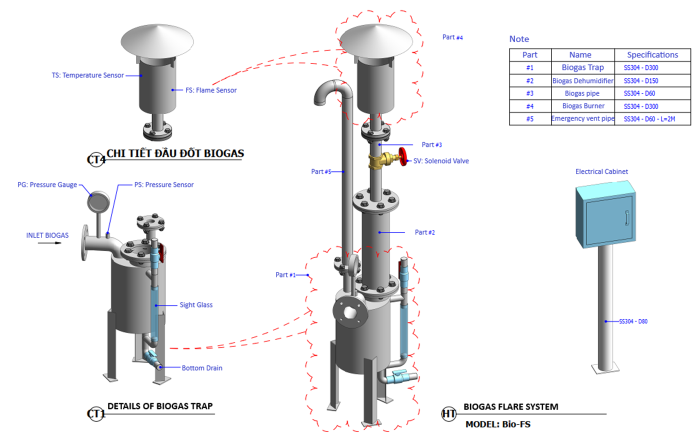 Additionally, the system is equipped with an emergency gas vent pipe.