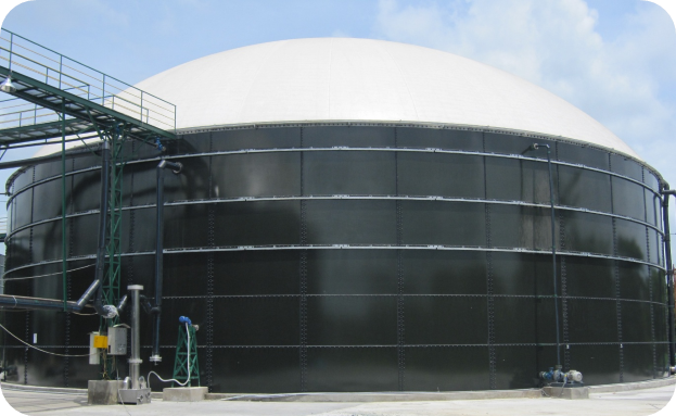 - Biogas is received from the anaerobic digestion system.